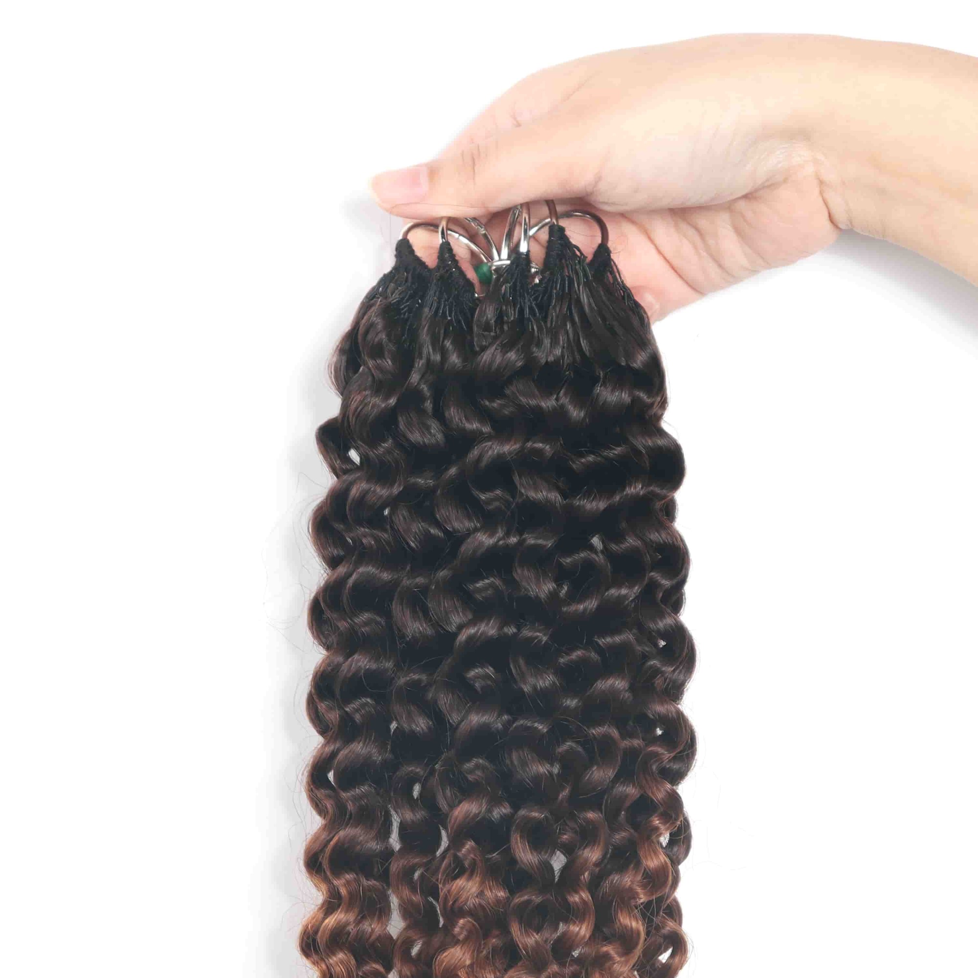 Deep Curly Micro Ring Loop Feather Crochet Hair Extension Remy Hair