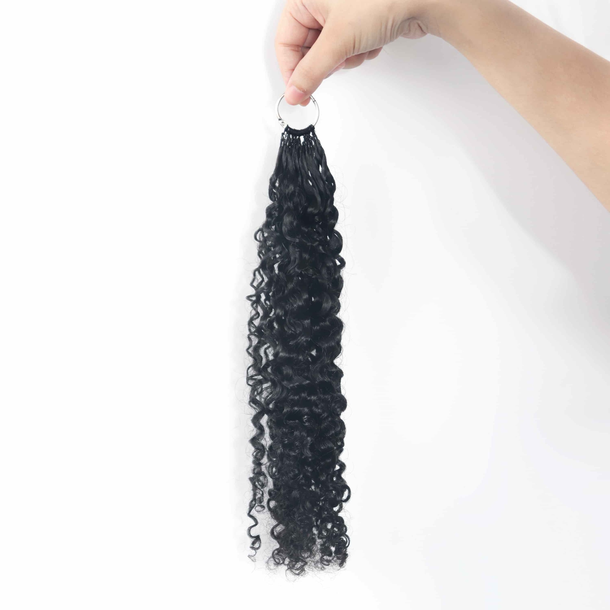 Multi-Textured Kinky Curly Micro Ring Loop Feather Crochet Hair Extension Remy Hair